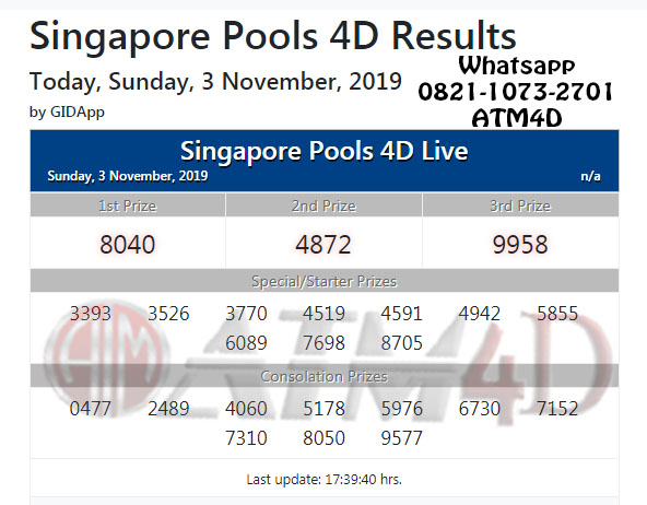 Data Pengeluaran Singapura Hari Ini Live Tercepat adalah salah satu hasil result keluaran sgp tercepat, terbaik dan terupdate saat ini. Untuk togelers, perputaran angka singapore pools wla 6d 4d ini sudah bisa sangat dipastikan resmi karena resmi Pengeluaran Result SGP. Langsung saja lihat nomor sg dibawah ini ! Data Pengeluaran SGP 2023 Silahkan klik Link ini ==> Data Hk 2022 Untuk melihat pengeluaran Hongkong update tercepat. Data Sgp Live 2022 - Tabel Nomor Pengeluaran Singapore Pools. Blog www.datasgp2019.cc adalah Forum Data Sgp live tercepat dan tersaji secara lengkap untuk anda, dapat di gunakan sebagai acuan dari prediksi sgp anda. Data angka Sgp, Tarikan Paito 4D Sgp.