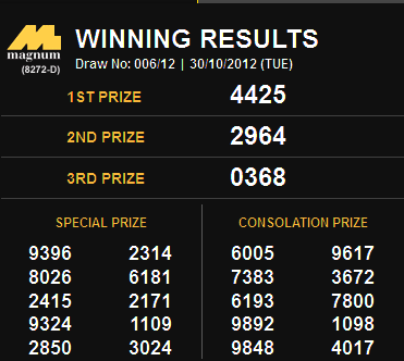 Check 4D Results 4D 1 3D and 6D Result As Of 30th October 2012
