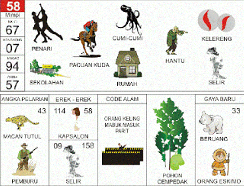 Buku Mimpi Togel. Wanita Cantik - Kura-Kura - Bola Sodok - Sabun Bubuk - Otak - Dewi Supraba. Nelayan - Ikan MAS - Angkat BESI - Belimbing - WC - Naga TATMALA.. Nakula. 01 05 95 12 45. Orang Buta - Rusa - Silat - Jamu - Paru-Paru - Destarata. Buku Mimpi 2D Erek Erek Tafsir 1000 Seribu Mimpi. Mimpi angka 2d pelarian china taysen gaya baru. Erek Erek 2D Lengkap Buku Mimpi 2D Bergambar primbon tafsir seribu mimpi 2D memuat Kumpulan Angka Kode Alam, No Pelarian, Taysen,. ( Ikan Mas - Nelayan ) Erek Erek 2D 3D ( Patah Kaki = 47 - 70) - ( Kelana = 156 - 170) Kode Alam: Kena Razia Polisi: Pohon: Pohon Jambu Monyet: Gaya Baru: